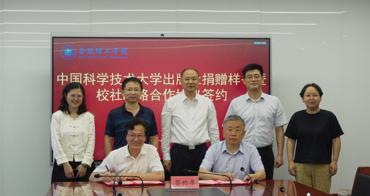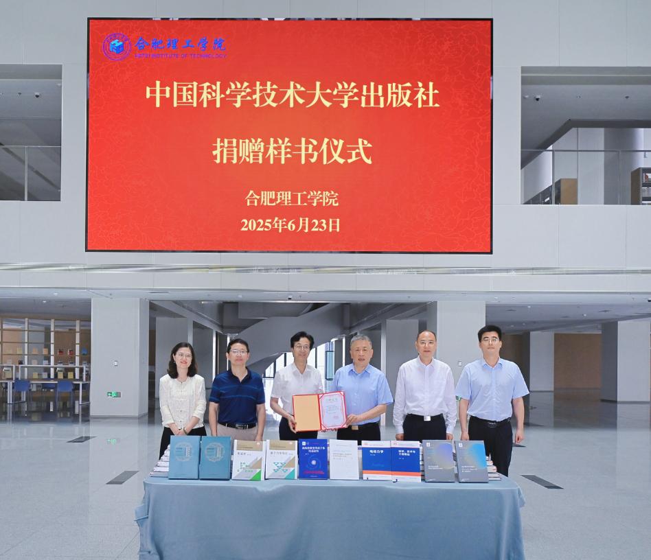 2025年6月23日上午,中国科学技术大学出版社(以下简称“中国科大出版社”)捐赠样书暨校社战略合作协议签约活动在我校顺利举行。合肥理工学院党委副书记、院长吴玉程,合肥理工学院党委副书记、副院长李先强,合肥理工学院筹备组副主任吴明在,中国科大出版社党工委常务副书记、党总支书记、董事长蒋家杰,中国科大出版社常务副总编辑李攀峰,中国科大出版社副社长李芳宇出席捐赠和签约活动。