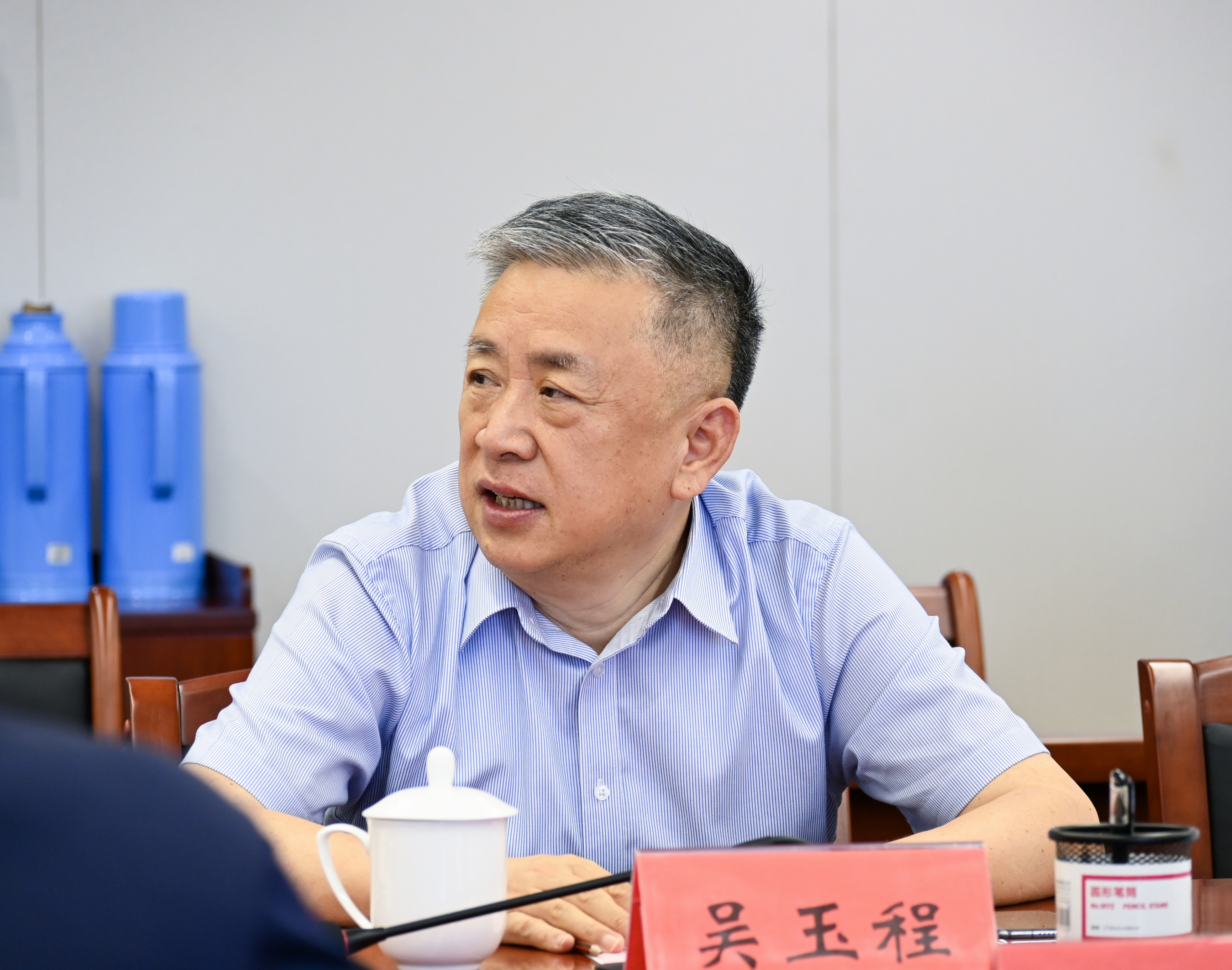 吴玉程感谢中国科大出版社向我校捐赠416册高校教材、学术专著等样书,并介绍了学校办学定位、办学理念、学科专业设置、首届招生专业与规模等有关情况。